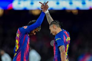 这将给巴萨一个机会:在国家德比中击败宿敌,从而锁定卫冕西甲冠军。那样的话,巴萨将在仅剩三轮联赛的情况下领先皇马12分。当然,如果两队在接下来三轮中拿到相同积分,无论具体结果如何,情况也依然如此。