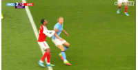 比赛第84分钟,哈兰德和加布里埃尔争顶后倒地,哈兰德起身后推了加布里埃尔一下,而加布里埃尔用头顶了哈兰德,主裁判向两人各出示一张黄牌。有媒体表示,如果当时哈兰德被对方头顶之后顺势倒地,加布里埃尔就会吃到红牌。
