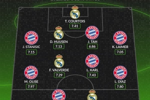 whoscored列皇马拜仁欧冠评分合体阵:拜仁三叉戟+姆巴佩领衔